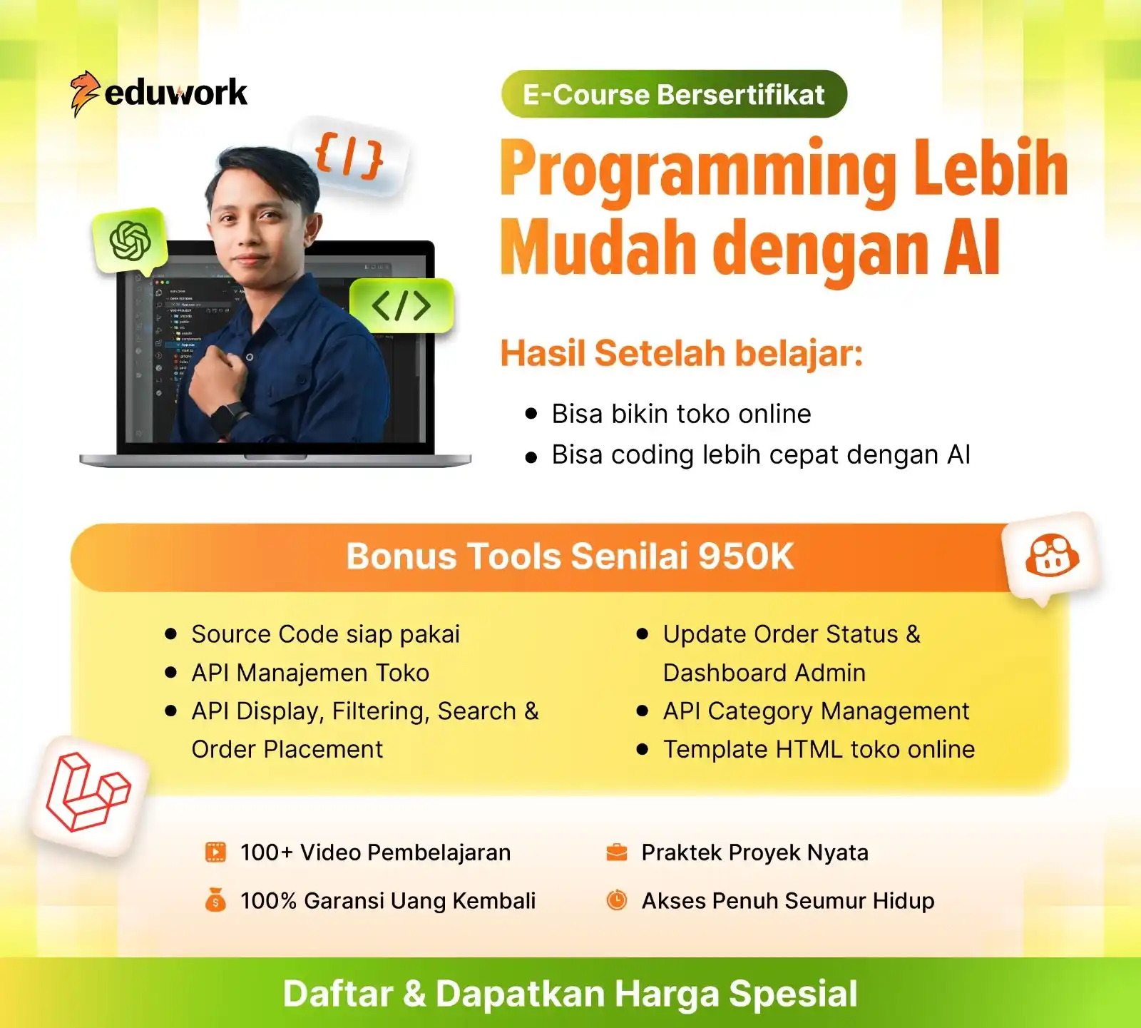 Ya, e-course ini dirancang untuk semua level, termasuk pemula. Materi disusun langkah demi langkah agar mudah diikuti, bahkan jika kamu belum pernah belajar Laravel atau AI sebelumnya.