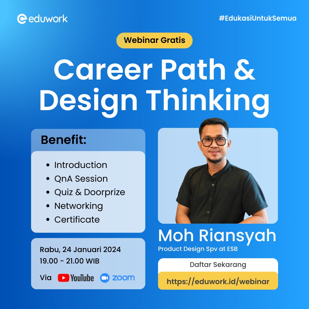 Bagaimana pendekatan design thinking dapat diterapkan untuk merancang jalur karir yang efektif dan memenuhi aspirasi profesional. Webinar ini menggabungkan konsep inovasi dalam pengembangan karir dengan strategi praktis untuk mencapai tujuan profesional secara kreatif dan terencana