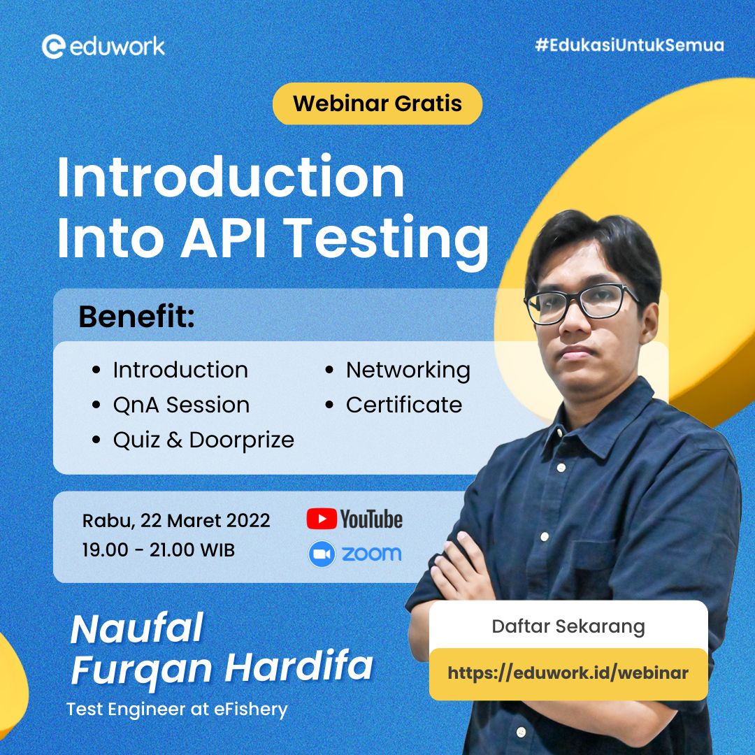 Webinar yang membahas dasar-dasar pengujian API, termasuk konsep, alat, dan teknik yang digunakan untuk memastikan API berfungsi dengan benar dan aman. Webinar ini akan mengajarkan cara mengidentifikasi dan mengatasi bug serta meningkatkan kinerja API.
