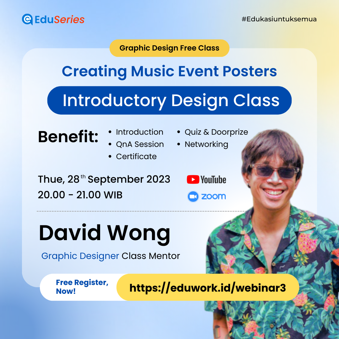 Webinar yang mengajarkan teknik desain poster untuk acara musik, mencakup elemen visual, tipografi, dan penggunaan warna yang efektif. Webinar ini akan memberikan tips praktis dan inspirasi untuk membuat poster yang menarik dan komunikatif.