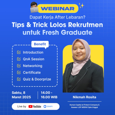 Free Webinar "Dapat Kerja After Lebaran? Tips & Trik Lolos Rekrutmen untuk Fresh Graduate"