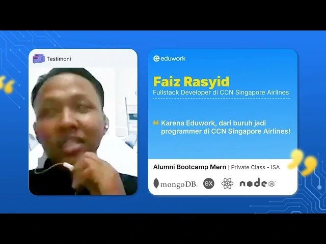 Berkat belajar dengan intens di eduwork. Sekarang Saya sudah mendapatkan pekerjaan di bidang IT. Perhatian mentor-mentor eduwork terhadap siswa sangat... Berkat belajar dengan intens di eduwork. Sekarang Saya sudah mendapatkan pekerjaan di bidang IT. Perhatian mentor-mentor eduwork terhadap siswa sangat bagus sehingga dapat selalu membangkitkan semangat. Terimakasih eduwork telah membimbing saya dari awal hingga mendapatkan kerja.