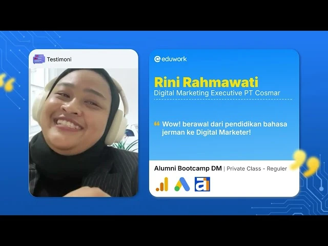 Kelas Bootcamp HR di Eduwork sangat menyenangkan, Sebagai siswa saya dibimbing langsung oleh mentor profesional yang keren, dan setelah selesai kelas,... Kelas Bootcamp HR di Eduwork sangat menyenangkan, Sebagai siswa saya dibimbing langsung oleh mentor profesional yang keren, dan setelah selesai kelas, kita akan tetap dibimbing dan diberi kesempatan untuk magang di Eduwork untuk mengaplikasikan dan praktek kerja langsung di bidang HR!