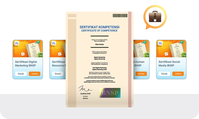 Lihat selengkapnyaProgram sertifikasi kompetensi dari Badan Nasional Sertifikasi Profesi untuk meningkatkan kredibilitas profesional.
