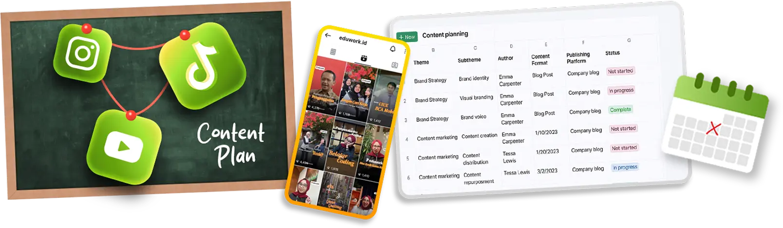 Dalam E-course ini, peserta akan mempelajari dasar-dasar perencanaan konten (content planning) yang efektif untuk berbagai platform media sosial. Selain itu, peserta juga akan dibimbing cara menggunakan referensi konten sebagai inspirasi bukan sekadar meniru, tapi mengolahnya menjadi konten orisinal dengan menambahkan sentuhan pribadi atau ide baru.