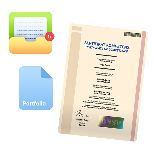 Sertifikat digital marketing ini resmi dari Badan Nasional Sertifikasi Profesi dan diakui secara nasional sehingga banyak digunakan oleh perusahaan sebagai standar kompetensi saat proses rekrutmen.